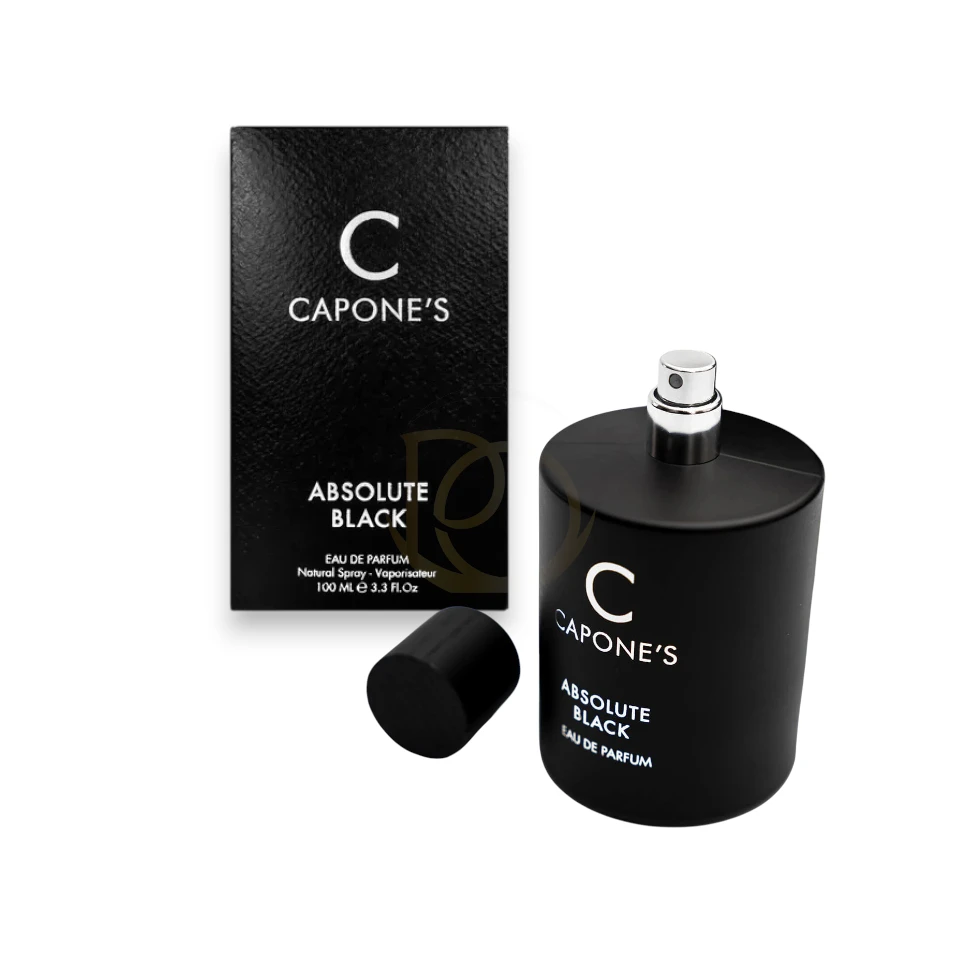 Absolute Black Capones es una fragancia Oriental Especiada con una estela de poder y misterio. Abre con Bergamota y Pimienta Negra, evoluciona a un corazón de Lavanda y Nuez Moscada, y se asienta en una base profunda de Ámbar, Cuero y Vainilla. Ideal para la noche y momentos importantes, esta fragancia es la elección perfecta para el hombre audaz que busca dejar una impresión inolvidable.