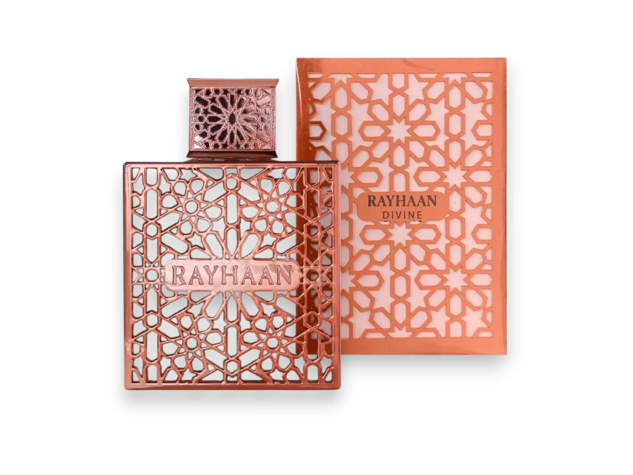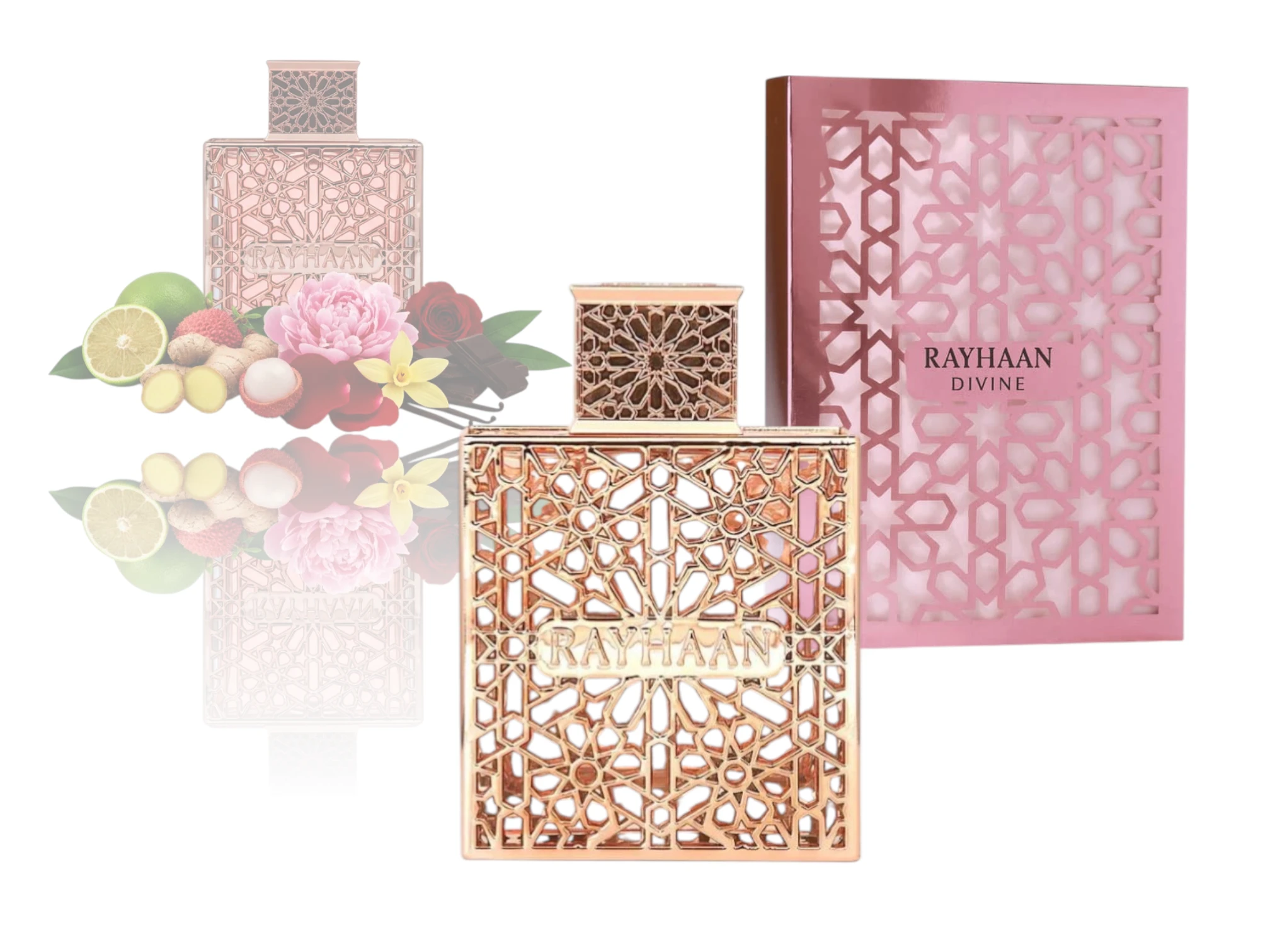 Divine Rayhaan es una fragancia que transmite lujo, frescura y espiritualidad con un carácter sofisticado y envolvente. Sus notas de salida de bergamota, limón y lavanda despiertan con energía y vitalidad, mientras que las notas de corazón de rosa, jazmín y geranio aportan un toque floral elegante y romántico. Finalmente, las notas base de almizcle, ámbar y sándalo envuelven con una estela cálida y duradera que equilibra frescura y profundidad. Divine Rayhaan es un perfume que refleja confianza y estilo, ideal para quienes buscan proyectar un aura moderna y cautivadora.