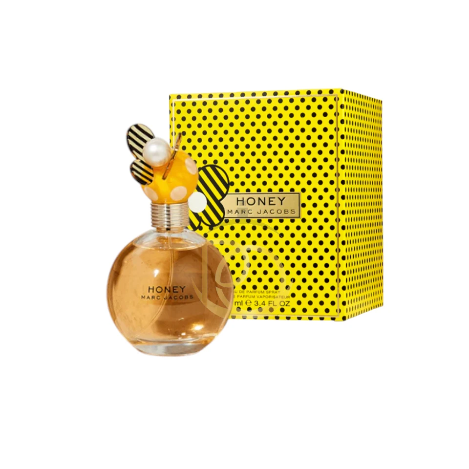 Perfume Honey Marc Jacobs es una deliciosa fragancia Floral Afrutada que irradia calidez, energía y un optimismo vibrante, sirviendo como el acompañamiento perfecto para la mujer que es dulce, pero que tiene una personalidad chispeante. Inspirado en el diseño de lunares y abejas, su aroma es tan alegre y brillante como su frasco. Las notas de salida inician con una ráfaga de frutas soleadas y frescas: la acidez de la Mandarin Orange (Mandarina) se fusiona con el vibrante Ponche de Frutas y un toque chispeante de Pera. El corazón de la fragancia es puramente floral y dulce, donde el Melocotón (Durazno) y el Acorde de Miel dominan, ofreciendo una dulzura suave y dorada, junto a la luminosidad de la Gardenia y la Madreselva.