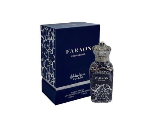 Faraon Pour Homme es una fragancia que evoca poder, misterio y elegancia atemporal. Las notas de salida combinan bergamota, pimienta negra y lavanda, creando una apertura fresca y especiada que impone presencia. En el corazón, el geranio, el incienso y la hoja de violeta aportan profundidad aromática y sofisticación. La base revela oud suave, cuero y ámbar gris, dejando una estela cálida, intensa y viril. Inspirado en la grandeza de los antiguos faraones, este perfume es ideal para el hombre que lidera con carisma, seguridad y estilo. Faraon Pour Homme transforma cada paso en una declaración de poder.